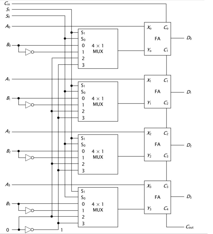 4개의 Full adder와 4개의 XOR gate를 가진다.
