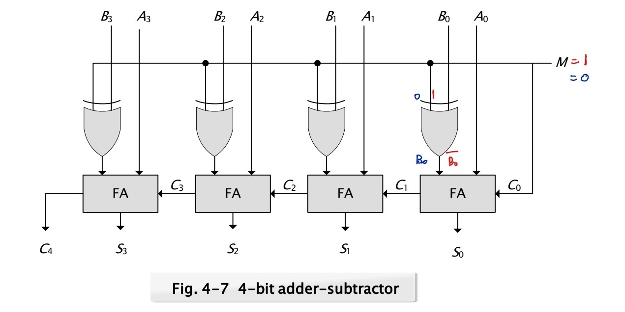 위의 그림은 binary adder-subtractor를 나타낸다.