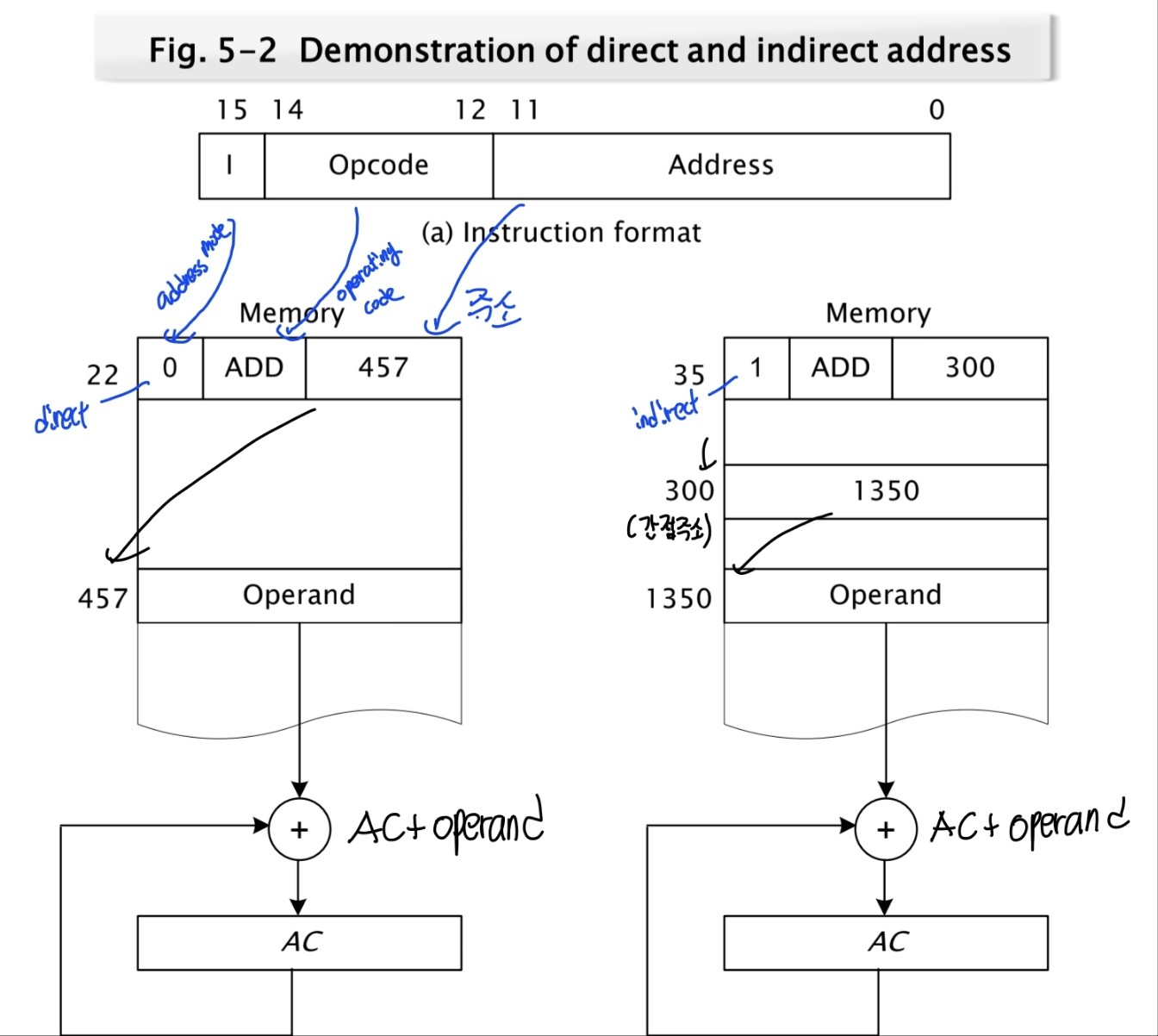- indirect addressing : operand = M[M[address]] {간접 주소를 말함}