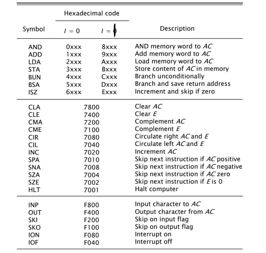 기본 컴퓨터(basic Computer)는 세 개의 코드 명령어를 가진다.