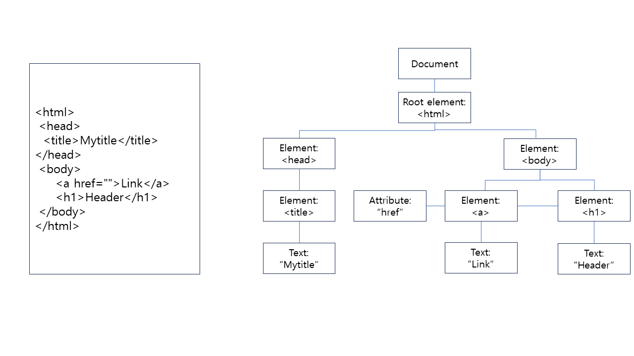HTML DOM의 경우 객체의 트리형식으로 만들어져 있다.