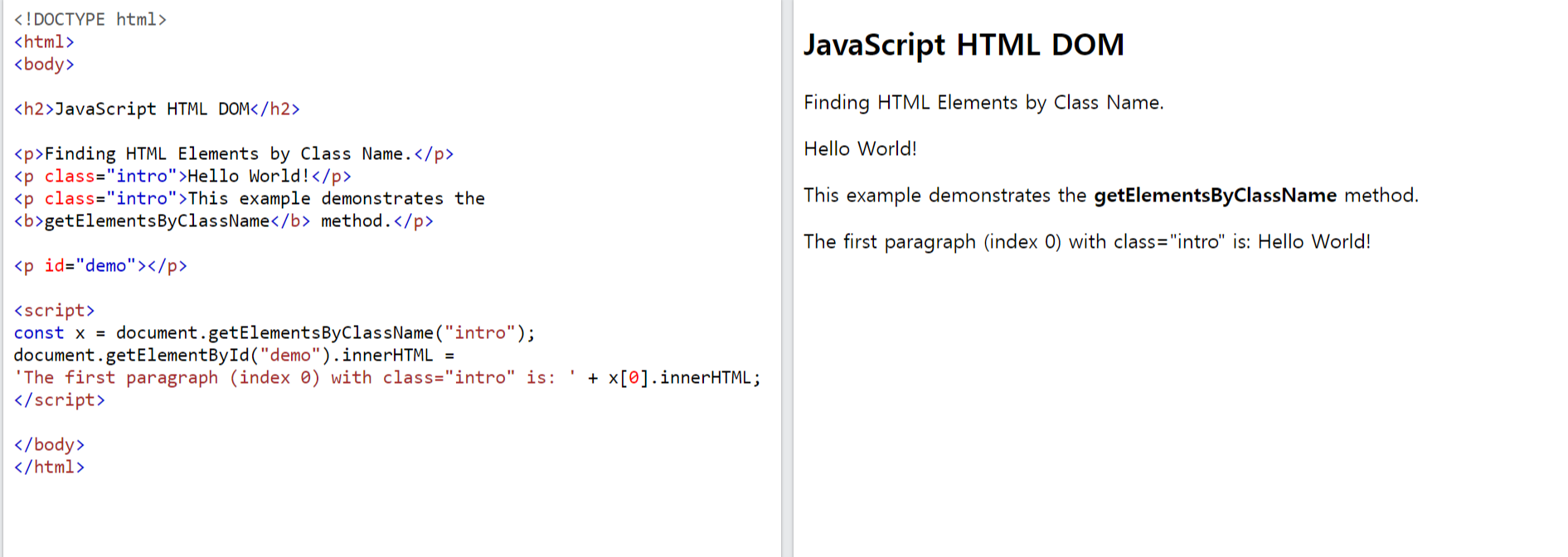 getElementsByClassName("intro")를 통해 intro 클래스를 사용한다.