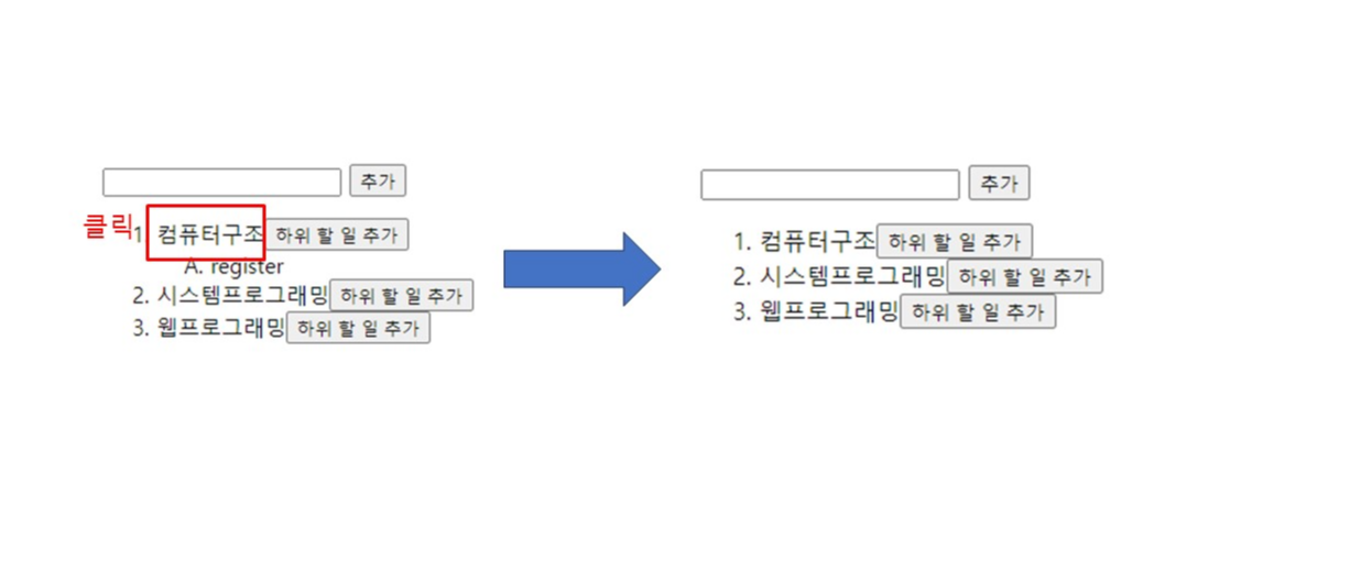 텍스트를 입력하고 '추가' 버튼을 클릭하면 아래와 같이 1,2,3 숫자번호가 있는 리스트가 생성이 된다.