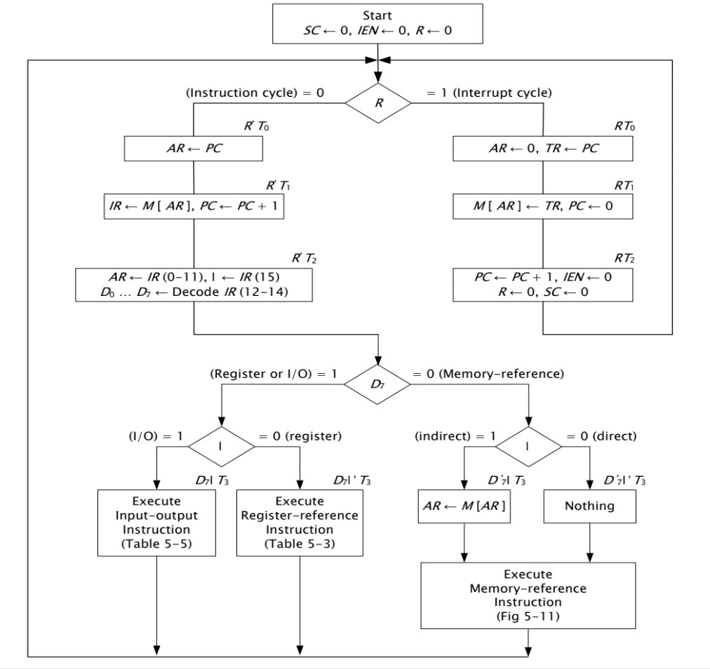 T2 : D0...D7 ← decode IR(12-14), AR ← IR(0-11), I ← R(15)