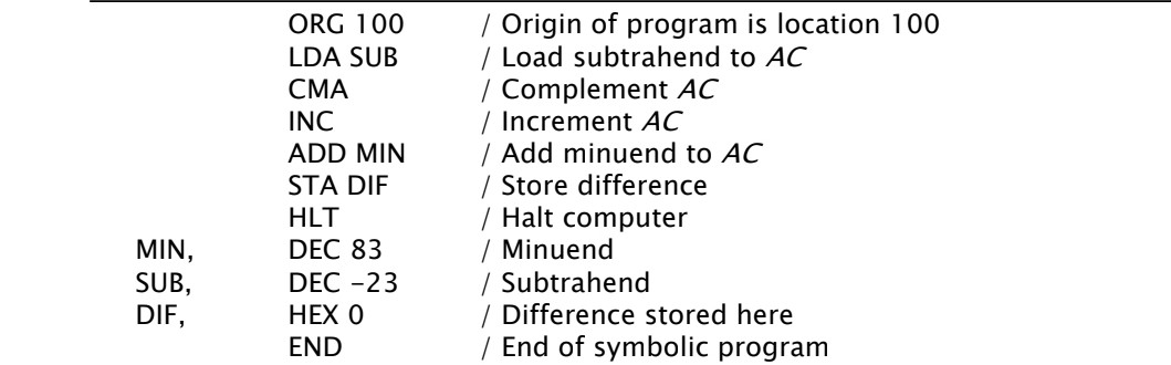 여기서 말하는 어셈블리어는 실제 mov나 call이 나오는 것이 아닌 Mano가 작성하는 symbolic program을 말한다.