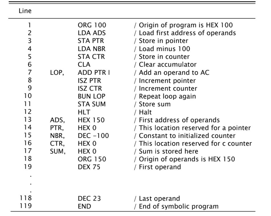 ORG 100 : 프로그램 시작 위치를 100으로 지정하였다. 즉 LDA 위치 100부터 END 108까지 진행된다.