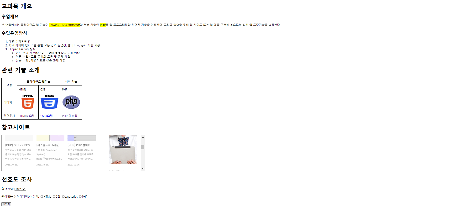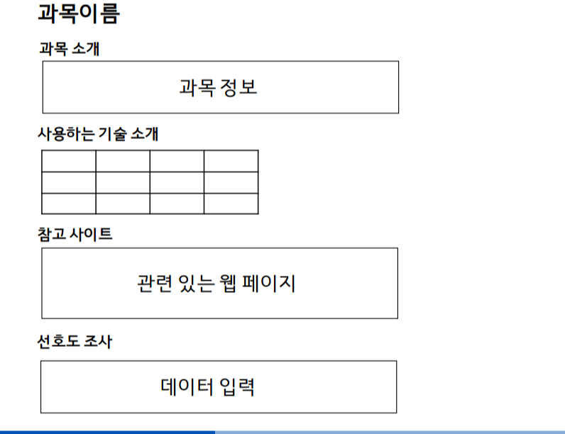 과목 소개, 사용하는 기술 소개, 참고 사이트, 선호도 조사